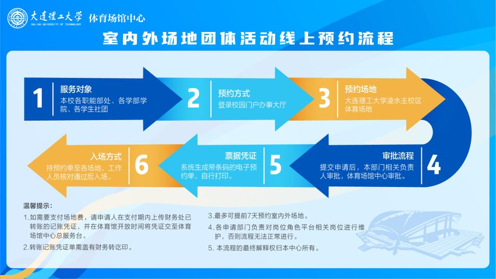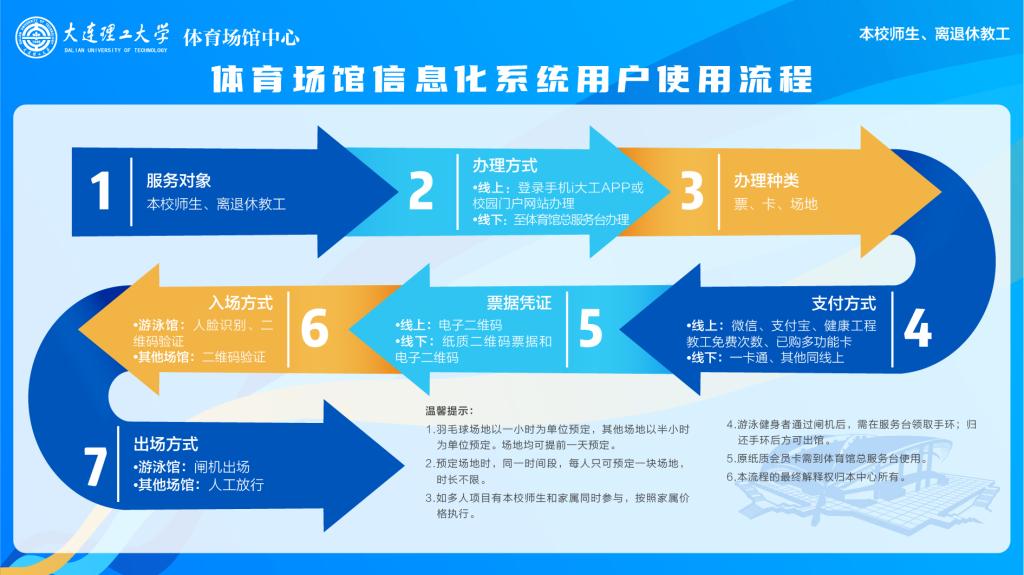 二、根据疫情防控要求,自9月7日零时起,体育场馆信息化管理系统上线运行,原则上师生须通过平台进行场地预定及支付,不接受现场业务办理,望理解。具体流程如下: