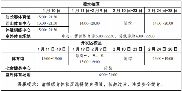 一、1月11日至2月28日体育类场馆具体开放时间安排如下: