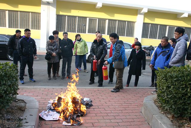 理论讲授结束后,翟建伟同志又给我馆员工详细讲解了灭火器的使用须知和使用要领,并通过现场灭火的实践演练为体育馆员工上了深刻的一课。