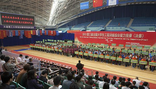 6月8日上午,由教育部高等教育司和全国大学生工程训练综合能力竞赛组委会主办,大连理工大学承办的第三届全国大学生工程训练综合能力竞赛在我校刘长春体育馆隆重开幕。教育部高教司副司长刘桔,辽宁省教育厅副厅长张建华,大连理工大学校长申长雨,竞赛组委会主任、大连理工大学常务副校长郭东明,教育部高教司实验处处长李平,竞赛组委会委员、合肥工业大学副校长朱大勇,竞赛组委会委员、专家委员会委员、裁判员以及来自全国25个省区77所高校的101支参赛队伍欢聚一堂,参与了开幕式。开幕式由竞赛组织委员会副主任、大连理工大学副校长李志义主持。