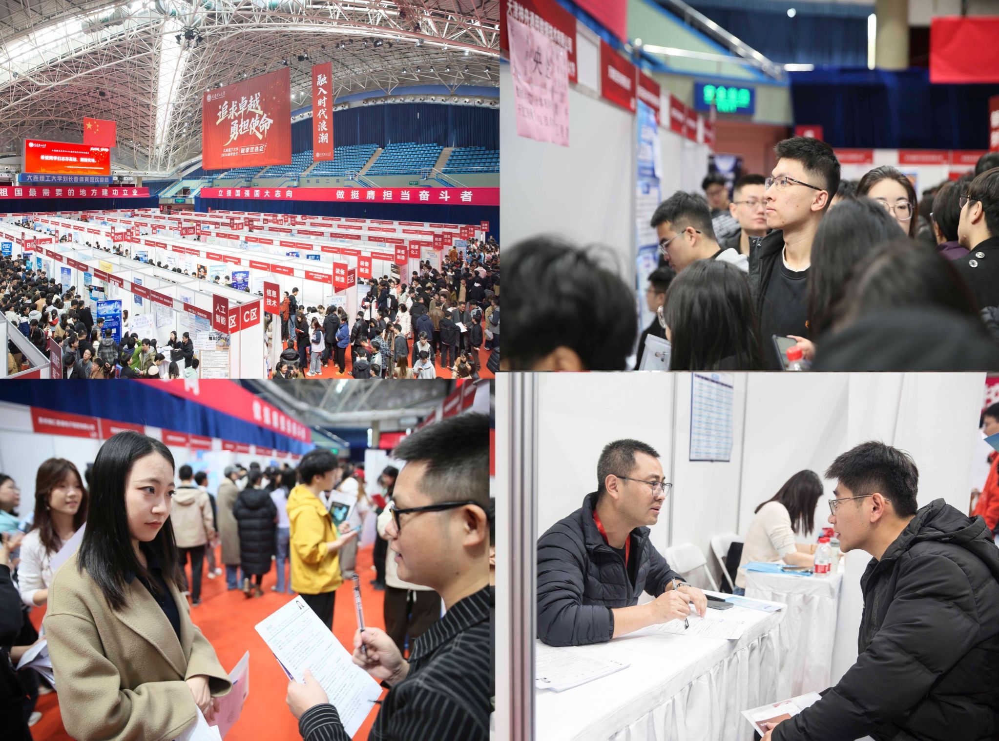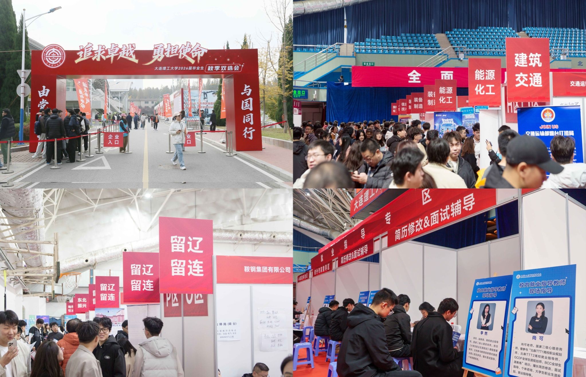 本届双选会参会单位涉及全国各地众多优质央企、国企、事业单位、科研院所、民企等。会场分行业设置国防军工、能源化工等十大特色专区,特别设立留辽留连主题专区,汇聚了省内112家企业组团招聘。会场特别设立的就业指导专区也吸引了大量同学驻足,专区整合校内外师资,提供简历修改、面试辅导、政策解读等一站式服务,特别引入AI简历修改、模拟面试等科技手段,助力毕业生提升竞争力。