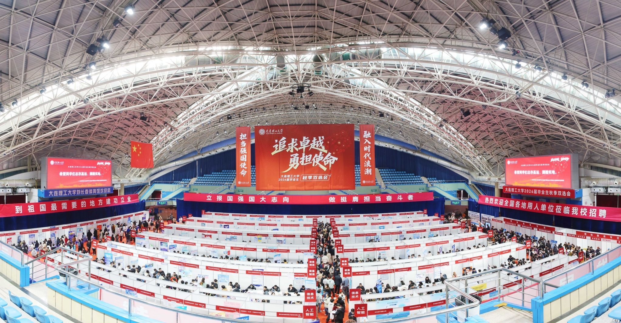 11月4日,学校在刘长春体育馆举办2026届毕业生秋季双选会。440余家企业汇聚于此,累计提供超3万个招聘岗位,现场吸引5000余名学生参会。党委书记项昌乐现场调研毕业生就业工作,辽宁省教育厅党组成员、副厅长纪洪涛和教育厅学生处处长张皓到场调研,党委副书记、副校长张言军以及学生服务中心(学生就业指导中心)相关负责同志陪同调研。