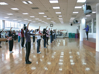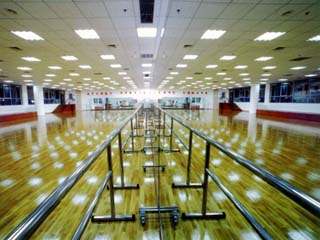 舞蹈馆面积400平方米,地面铺设优质运动地板,配有电视、音响、地毯、镜子、把杆等设施,是舞蹈教学、训练、健身的理想场所。
