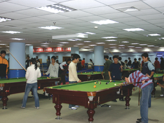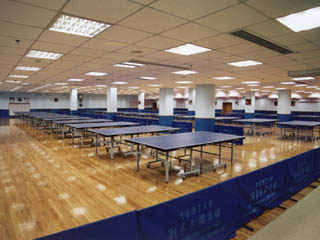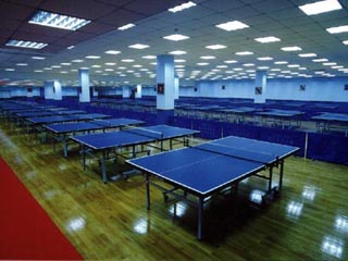 乒乓球、台球馆面积1200平方米,地面铺设优质运动地板,馆内布局合理、设计新颖 , 配有30张标准乒乓球桌和16张美式落袋台球桌,设有器材租赁处、男女更衣室以及电视、音响等系统,能够满足众多乒乓球、台球爱好者的需求。