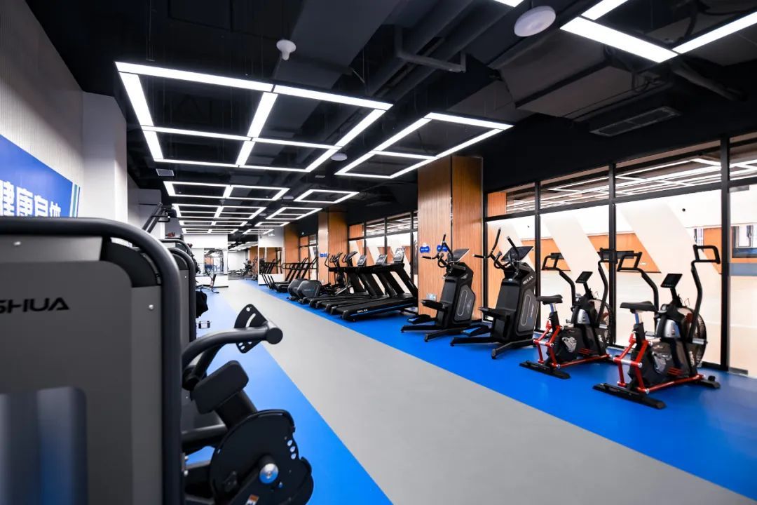 健身馆分为有氧训练区和器械训练区,内设各类健身器材近30台类包括电动跑步机、弧形跑步机椭圆登山机、空气助力车等各类有氧运动设备;史密斯机、卧推架、 深蹲架等单体力量器械。能够满足教学、训练及广大健身爱好者的锻炼需求。